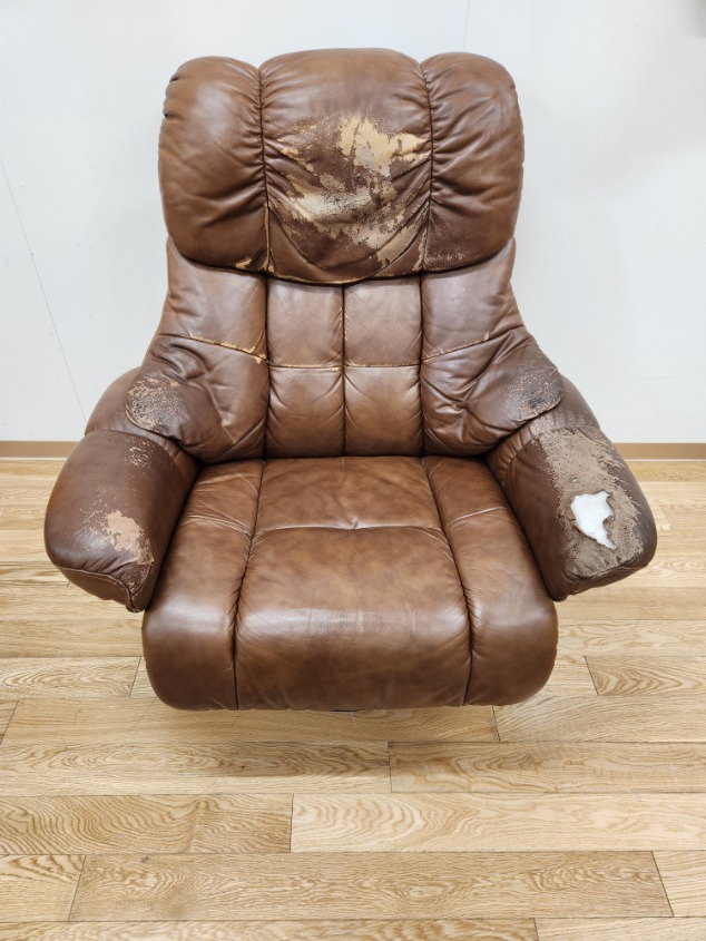 一般住宅でご使用のリクライニングチェアの張替えを行いましたので、ご紹介をさせていただきます。